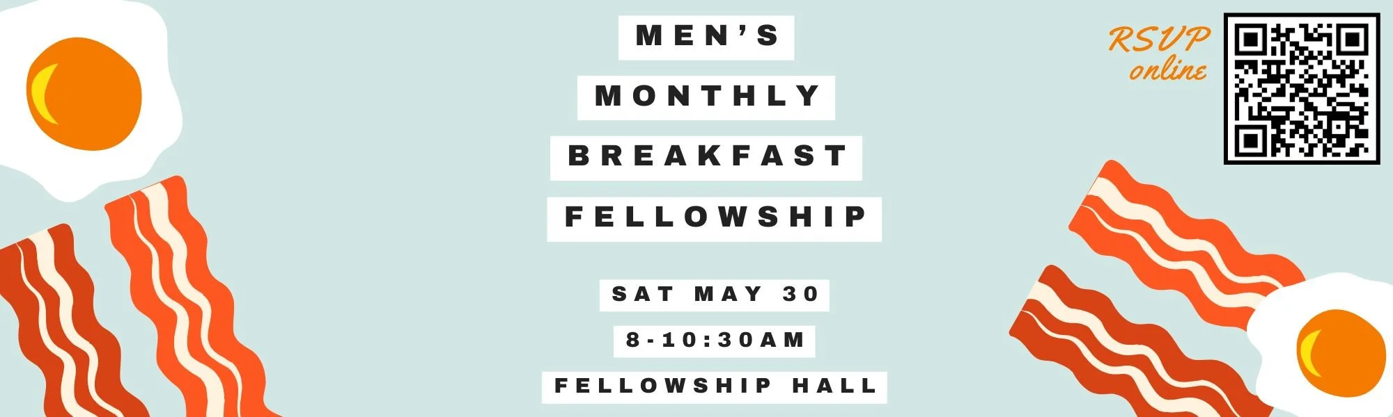 Men, please join as we gather for a time of spiritual encouragement and fellowship on Saturday, April 25th at 8:00 - 10:30am. We will be meeting in the old fellowship hall for a time of worship followed by breakfast fellowship. Looking forward to seeing you there!