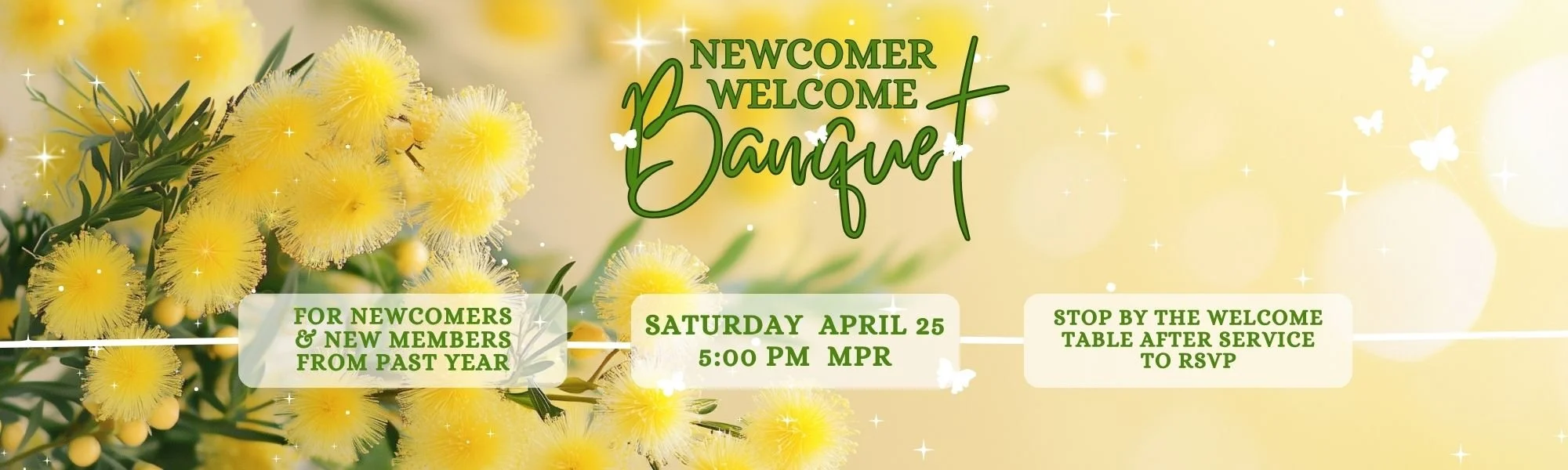 Newcomer Banquet Mar 28 Written By Bethel Church EM Please get your invite and RSVP at the Welcome Table outside the Promise Chapel. Bethel Church EM https://www.bethelchurchem.org
